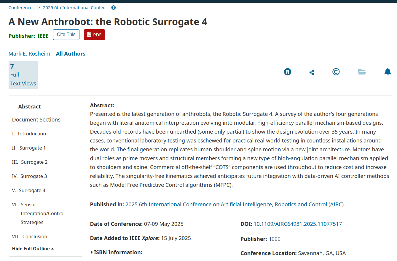 A New Anthrobot: The Robotic Surrogate 4, Mark E. Rosheim. was presented at